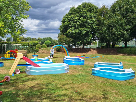 80 TSL Kinder inkl. "externen" Freunden haben an zwei Terminen in den Sommerferien auf dem Vereinsgelände eine Plantschparty gefeiert.
